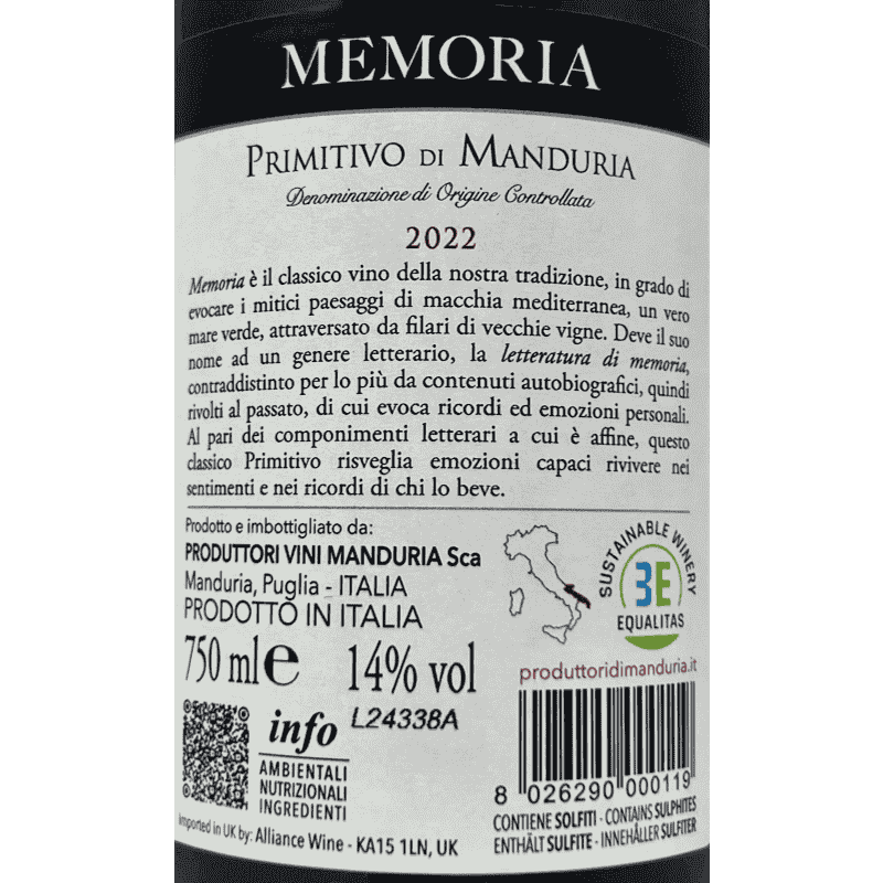 Primitivo di Manduria Memoria DOC 2022 - Produttori di Manduria