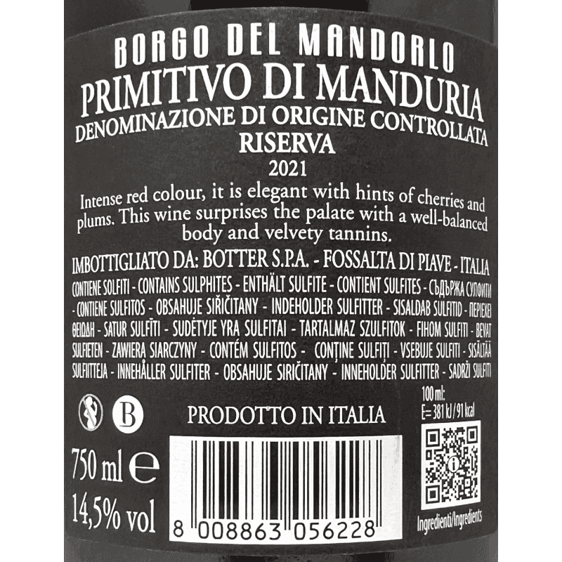 Primitivo di Manduria Riserva Anniversario 62 DOP 2019 - Cantine San Marzano