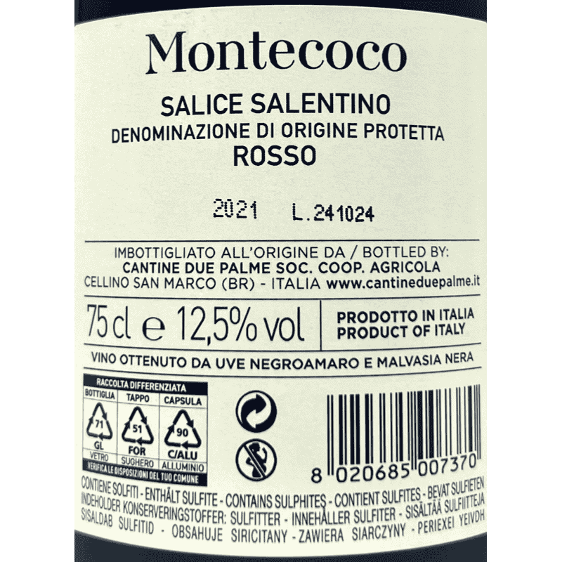 Salice Salentino Montecoco DOP 2021 - Cantine Due Palme