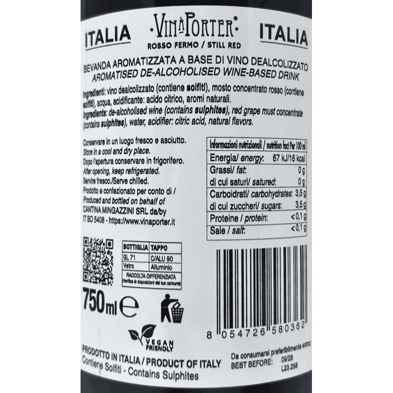 Vino Rosso Fermo Sotto Zero Alkoholfrei 0,0% - Vin a Porter